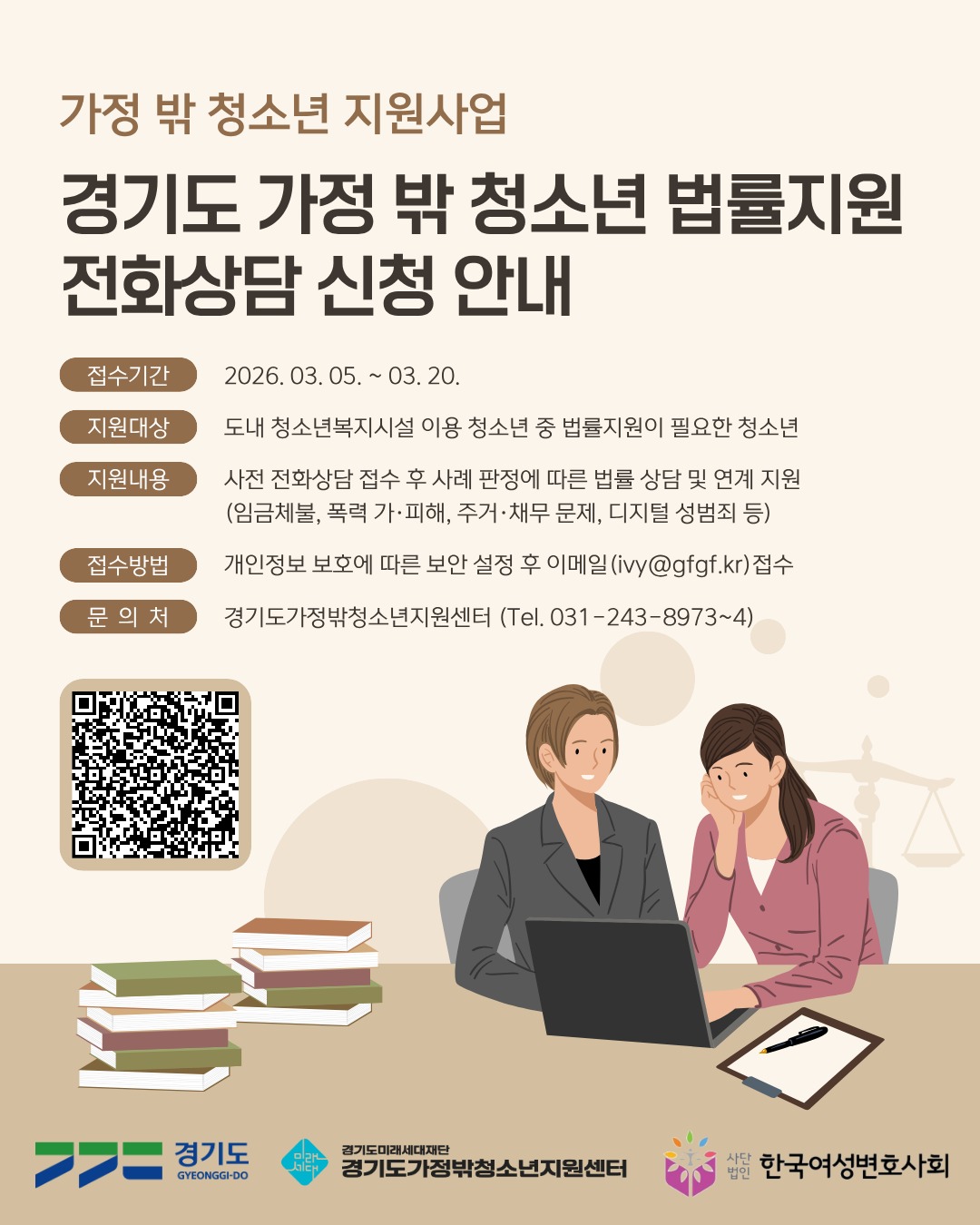 [사업신청] 경기도 가정 밖 청소년 법률 지원을 위한 전화상담 신청 안내
